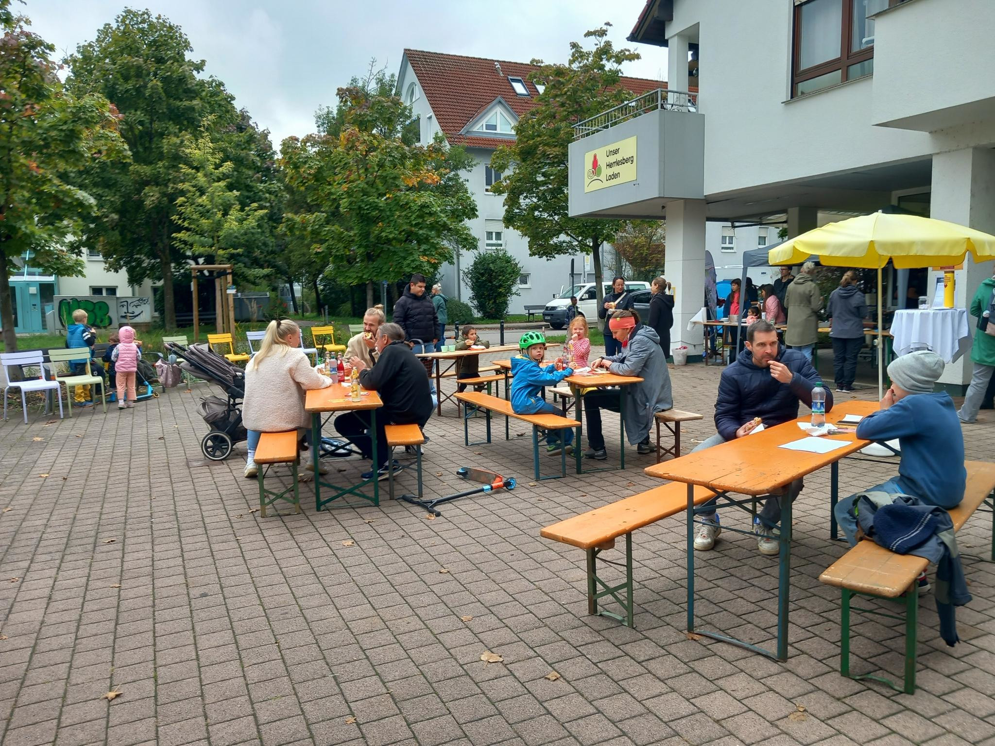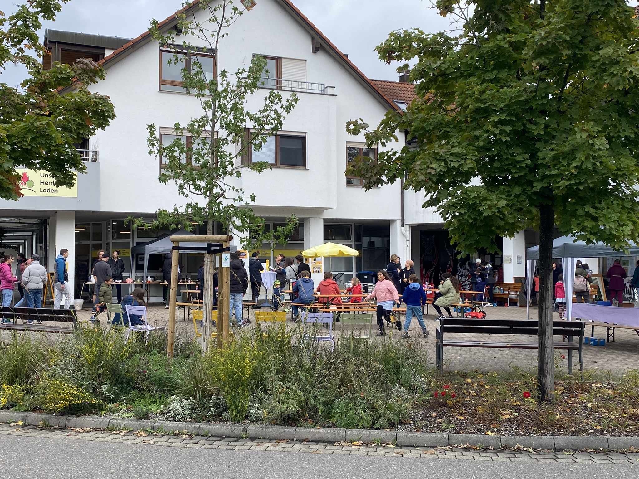 Am Samstag, dem 23.9.2023 fand auf dem Plätzle das Herrlesbergfestle statt. Beim Herrlesberg-Treff gab es selbstgebackenen Kuchen und bei uns Gegrilltes. Der Herrlesberg-Treff hat an unserer Schaufensterfront eine Pinwand eingerichtet, an welcher die Besucher ihre Wünsche und Vorstellungen zur Gestaltung des Platzes anbringen konnten.