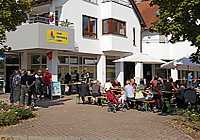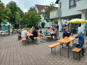 Auch diesmal war uns der Wettergott hold. Bei wunderbarem Wetter konnten sich die Gäste auf dem Platz wohlfühlen. Vielleicht entwickelt sich aus der Zusammenarbeit von Treff und Laden ja auch eine Tradition zur Belebung des Plätzles?
