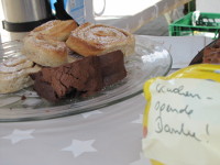 Das Wetter hat hervorragend mitgespielt, wir hatten schönsten Sonnenschein. Sowohl unsere Würstchen als auch die Kuchen fanden reißenden Absatz.