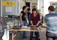 Beim Treff gab es Kaffee und Kuchen, eine Kleidertauschbörse und eine Malaktion für die Kinder. Am Lädle gab es Würstle vom Grill und Waffeln. An einem Tisch konnte man sich über die Genossenschaft informieren.