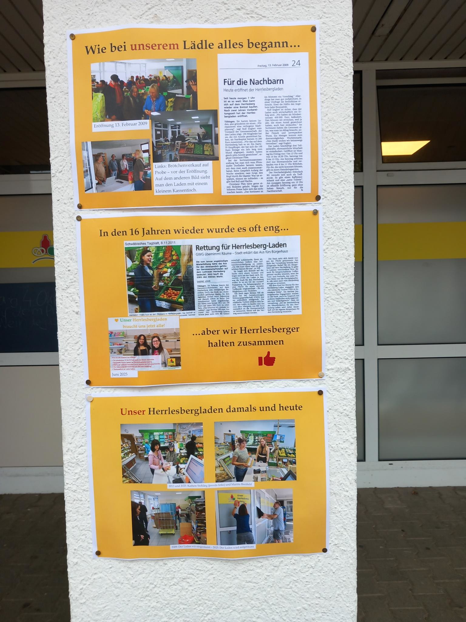 Wollen die Herrlesberger ihr Lädle? Das war die alles entscheidende Frage Anfang Juni 2025. Da der Laden kurz vor dem Aus stand, hat die Nachhaltigkeitsgruppe im Herrlesberg-Treff eine Unterstützungsoffensive gestartet. Nach dem Sommer denken wir: Der Herrlesberg will sein Lädle. Der Umsatz ist gestiegen, und die Kosten sind gesunken, dank der vielen Ehrenamtlichen. Die erfreulichen Bilanzen sind hier öffentlich einsehbar. Wenn es so weitergeht, können wir am 13. Februar 2026 den 17. Geburtstag unseres Herrlesbergladens feiern. Es gibt übrigens auch Lädle, die das nicht schaffen. Am 9. Juni, als unsere Rettung gerade losgegangen ist, musste der Dorfladen Niederstaufen an der österreichischen Grenze leider schließen.