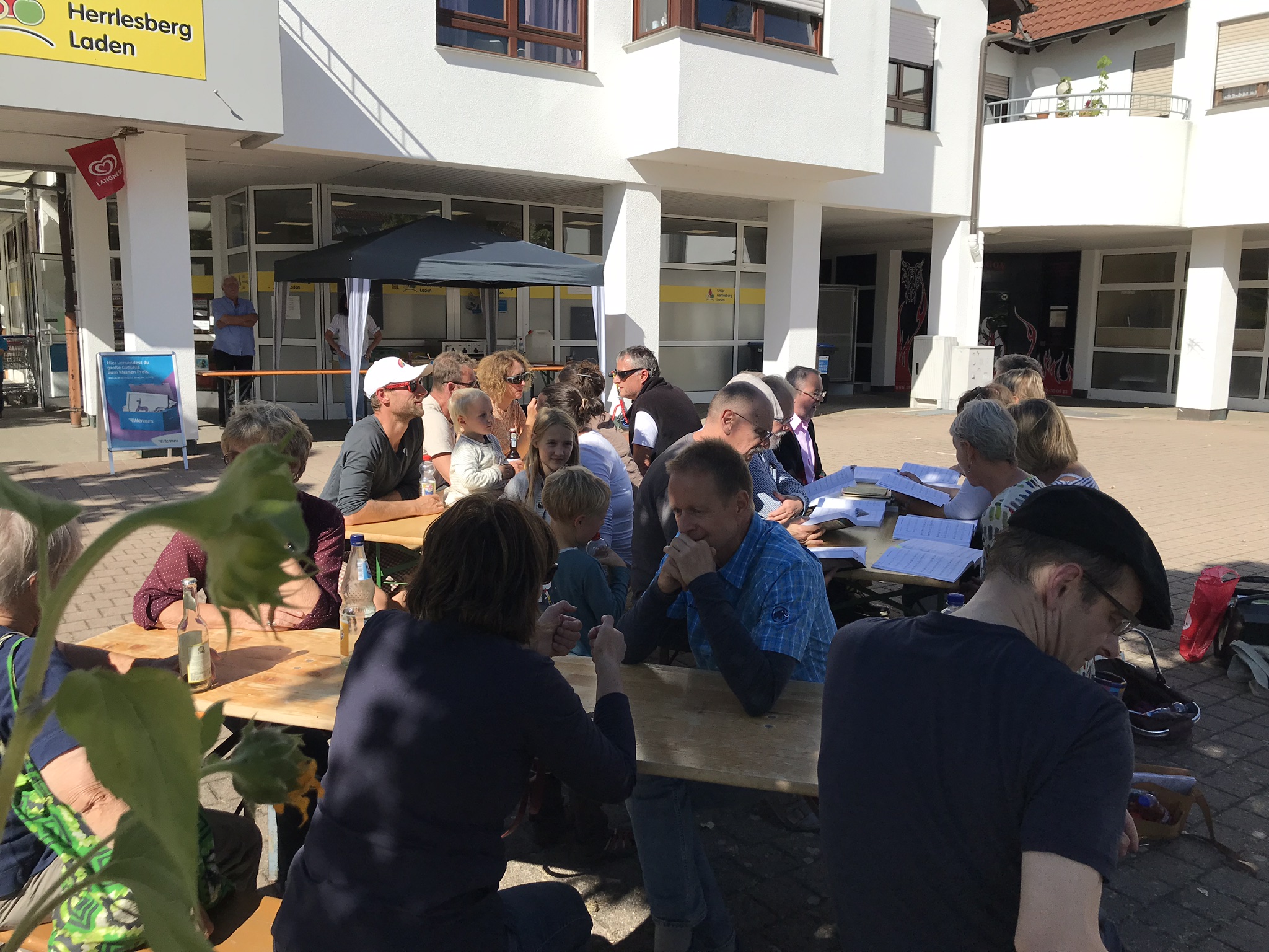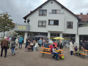 Am Samstag, dem 23.9.2023 fand auf dem Plätzle das Herrlesbergfestle statt. Beim Herrlesberg-Treff gab es selbstgebackenen Kuchen und bei uns Gegrilltes. Der Herrlesberg-Treff hat an unserer Schaufensterfront eine Pinwand eingerichtet, an welcher die Besucher ihre Wünsche und Vorstellungen zur Gestaltung des Platzes anbringen konnten.