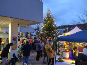 Nachdem in den vergangenen Jahren wegen der Corona-Pandemie der traditionelle Nikolausmarkt auf dem Plätzle leider ausgefallen war, hat es heuer wieder einen gegeben – am Freitag, 8.12.2023 ab 15 Uhr. Viele Stände mit Selbstgebasteltem, Glühwein, Kinderpunsch, Waffeln und bei uns Würstle vom Grill waren um den Weihnachtsbaum aufgestellt.